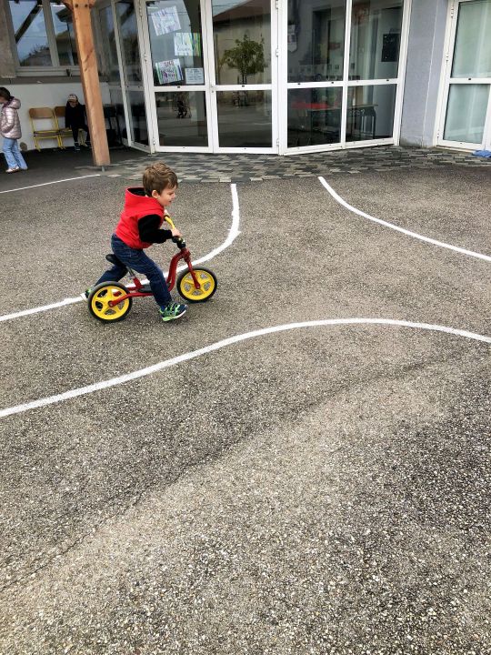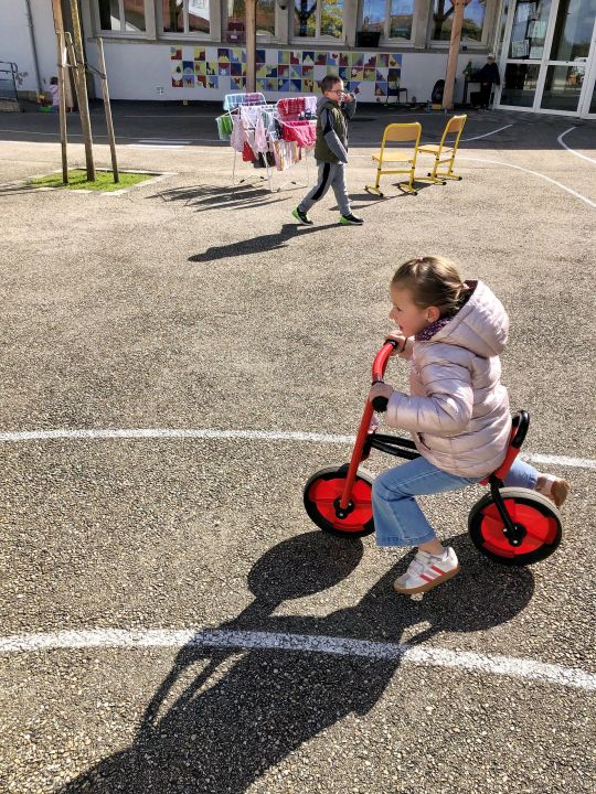 Pendant ce temps, les autres vélos sont toujours autant utilisés ainsi que les jeux du préau.