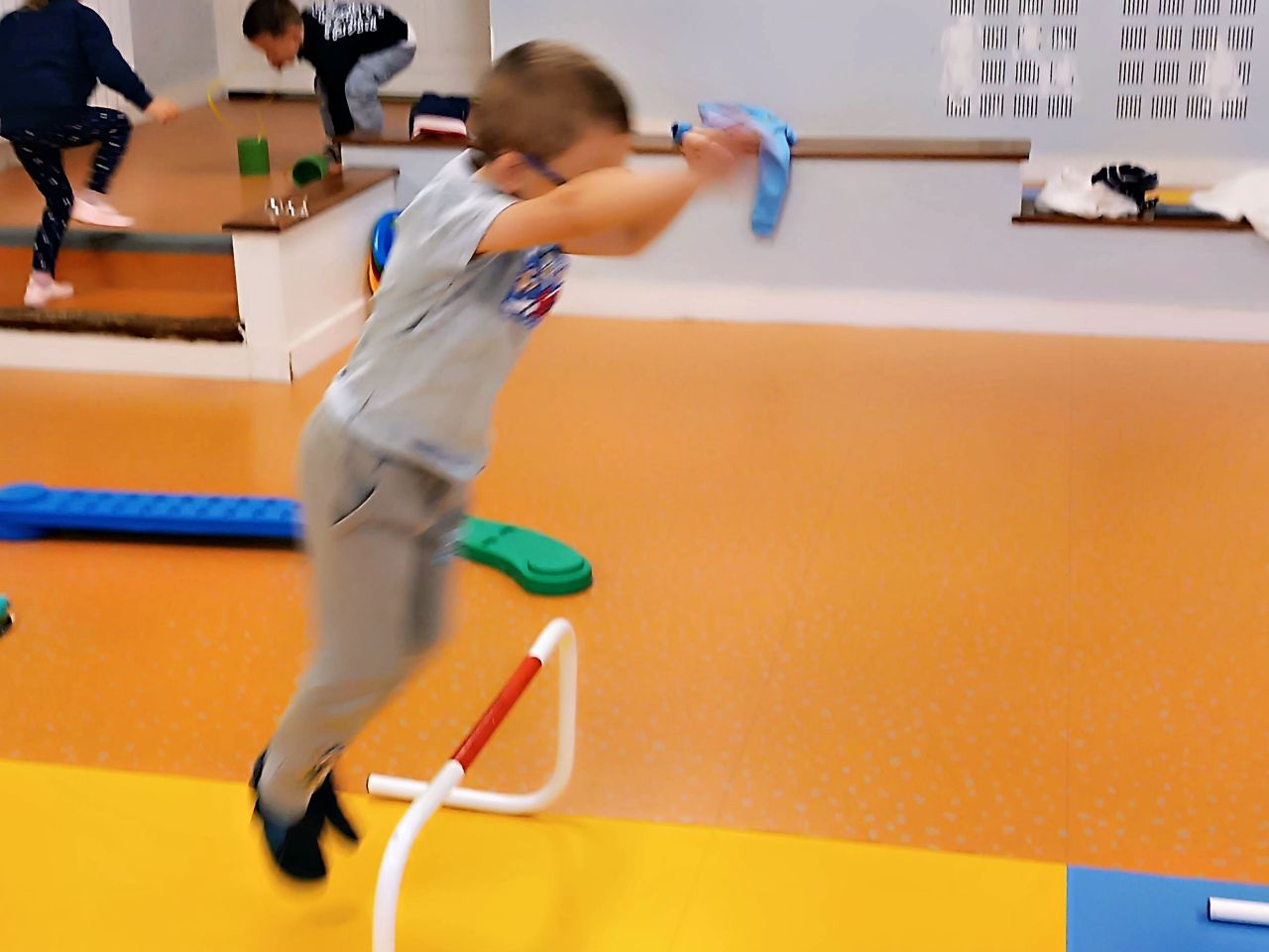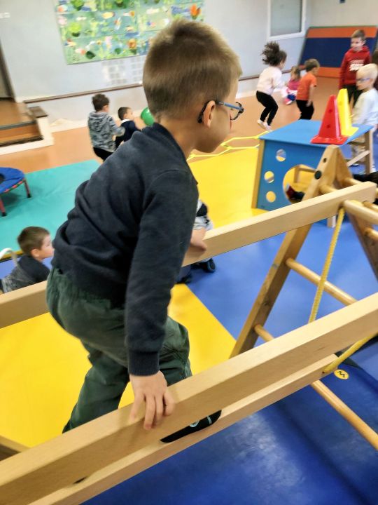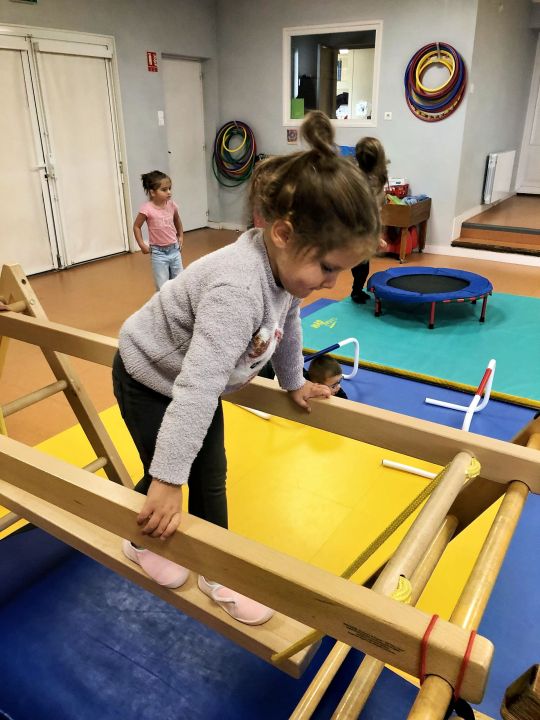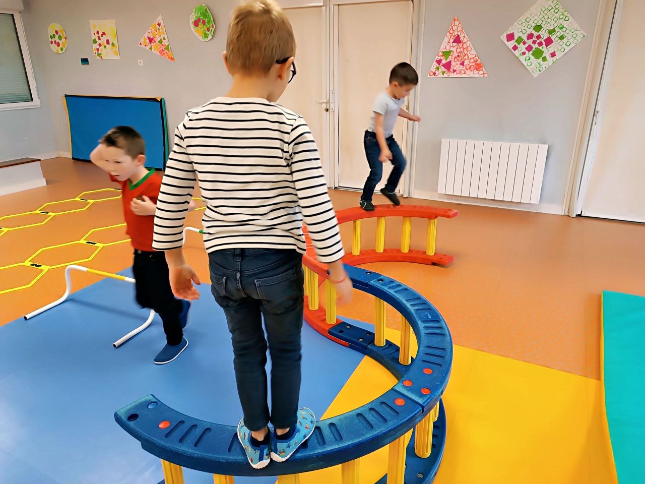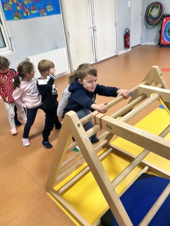 Tous les jeudis et vendredis, nous faisons le grand parcours. Il permet d’apprendre à grimper, sauter, rouler, marcher en équilibre ou en hauteur… le tout avec l’aide et la surveillance de deux adultes.