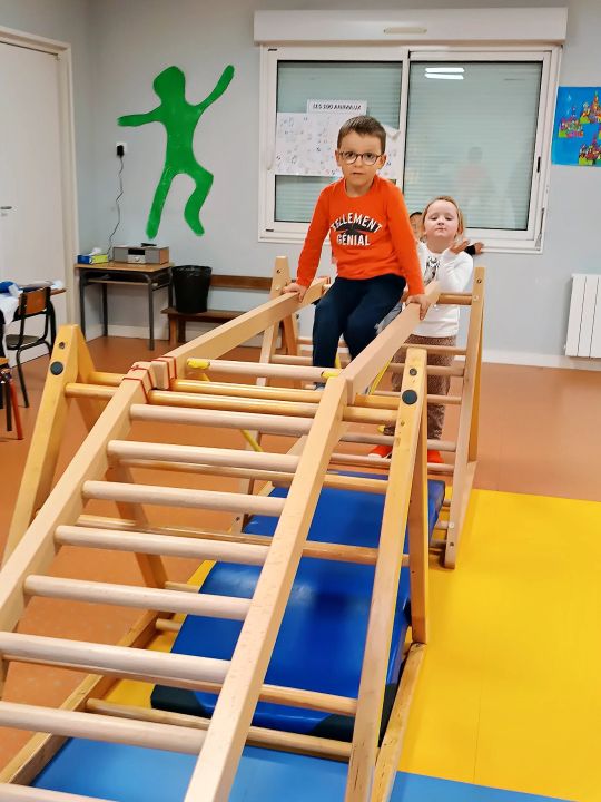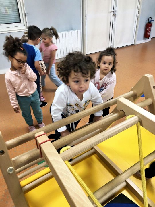 Voilà un petit aperçu de notre activité sur le grand parcours où les enfants affinent leurs compétences en motricité : grimper, ramper, sauter, glisser, rouler...