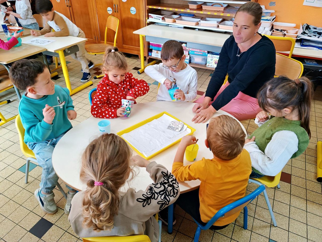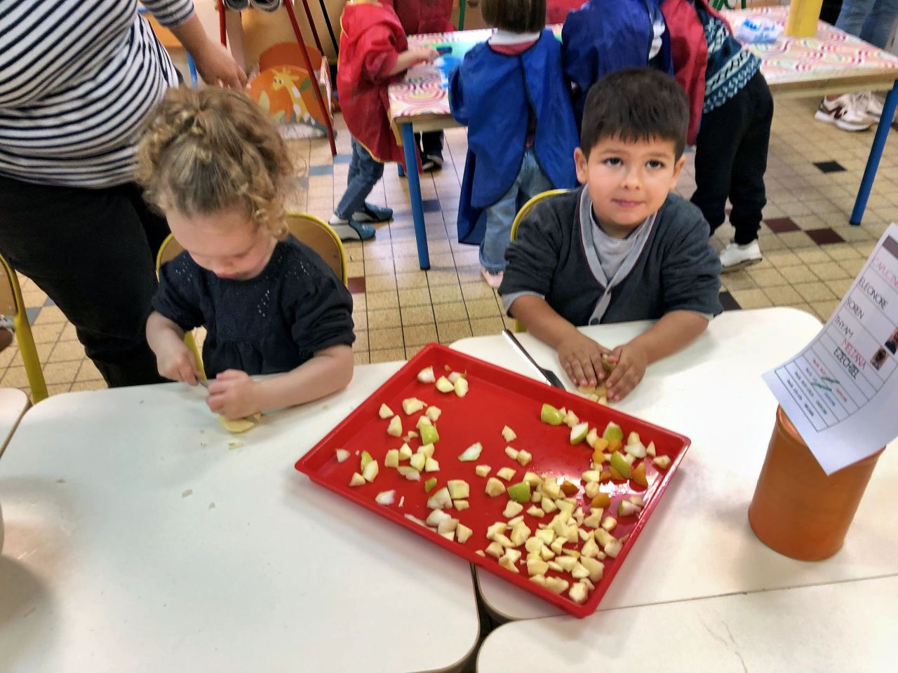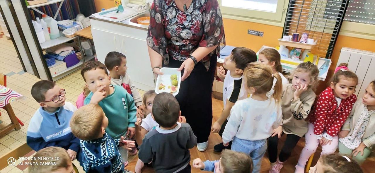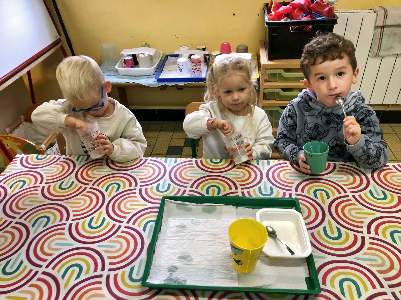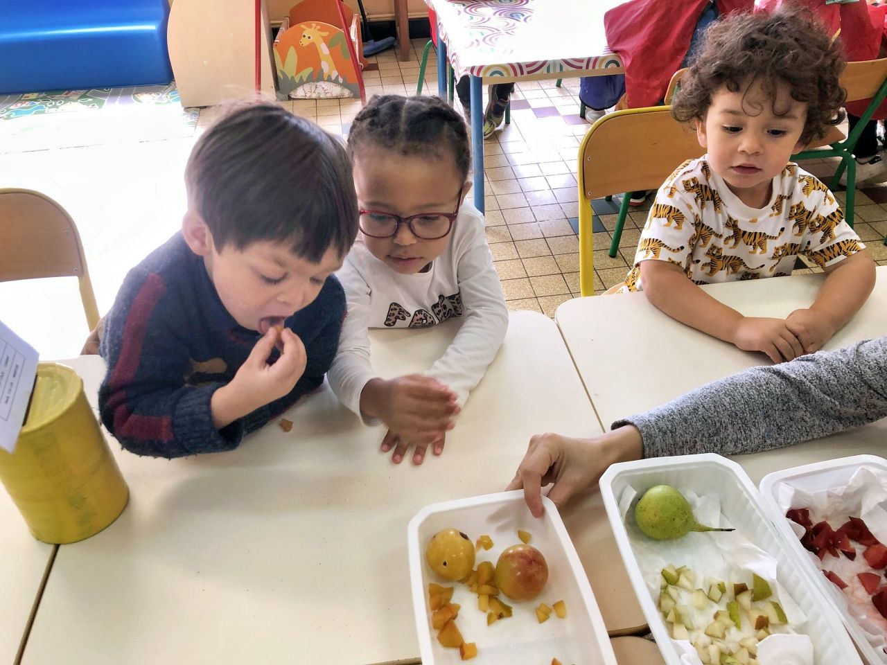 Avec les élèves de petite et quelques élèves de moyenne section, nous avons fait deux premiers ateliers de la semaine du goût.