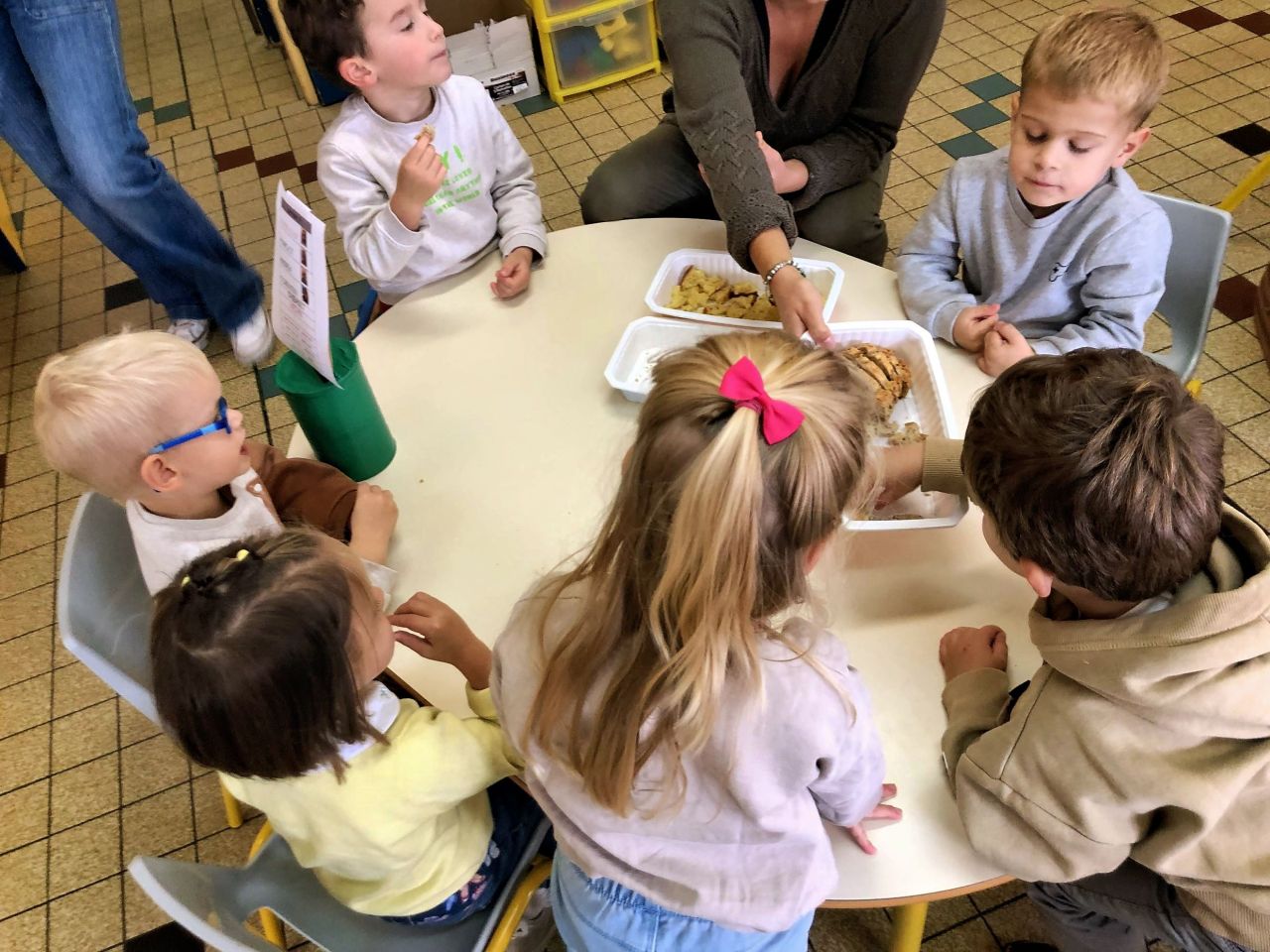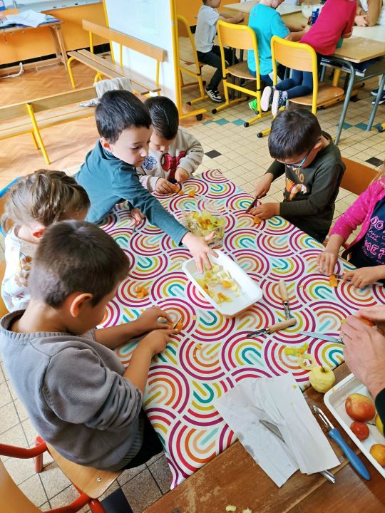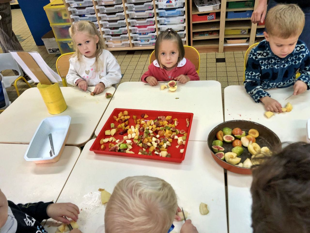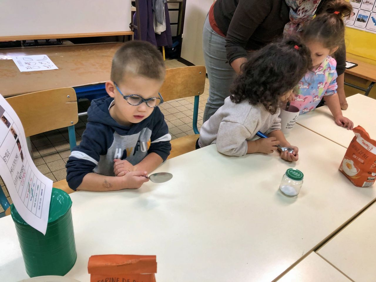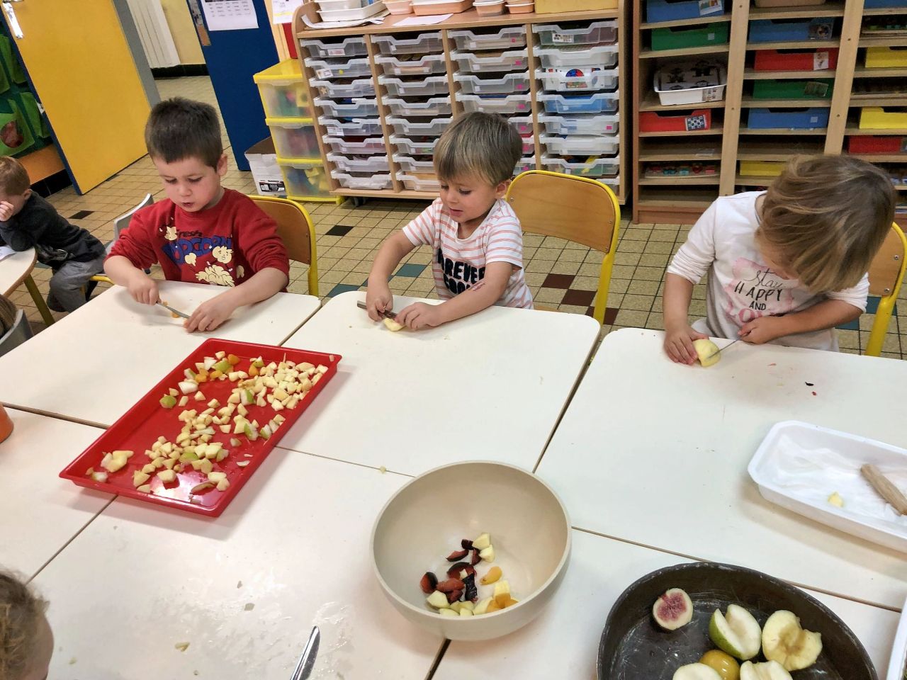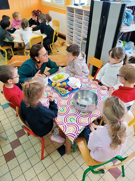 Avec les élèves de petite et quelques élèves de moyenne section, nous avons fait deux premiers ateliers de la semaine du goût.