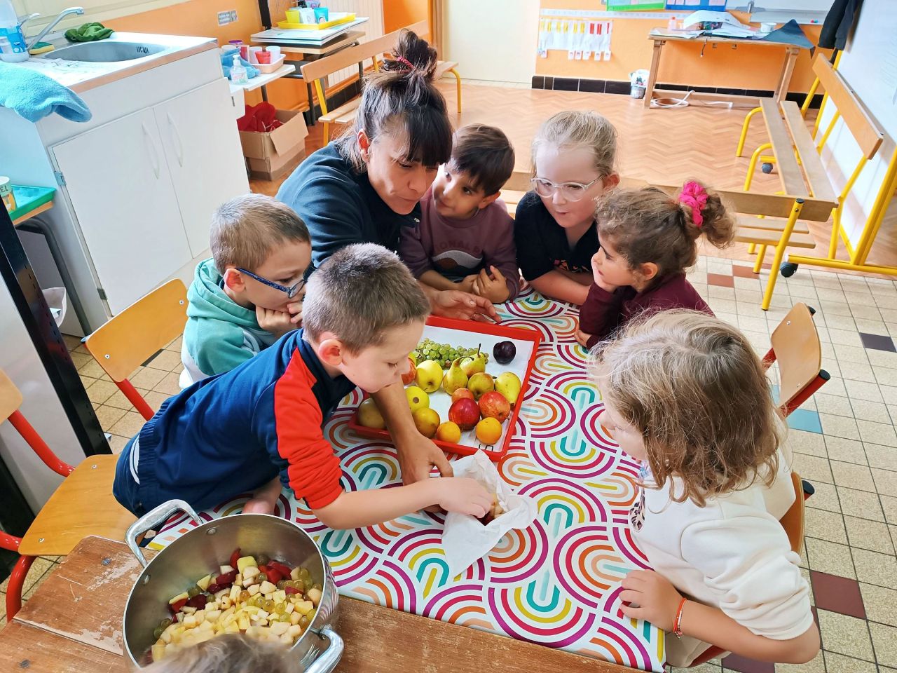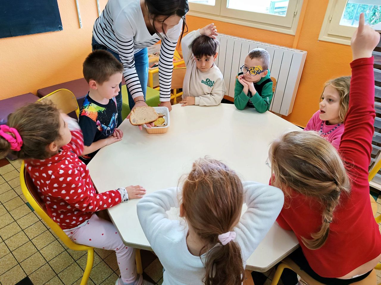 Dégustation de pain et préparation de compote avec des fruits de saison
