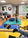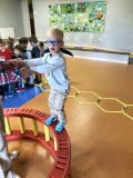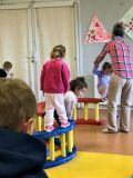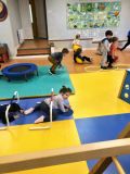 Tous les jeudis et vendredis, nous faisons le grand parcours. Il permet d’apprendre à grimper, sauter, rouler, marcher en équilibre ou en hauteur… le tout avec l’aide et la surveillance de deux adultes.